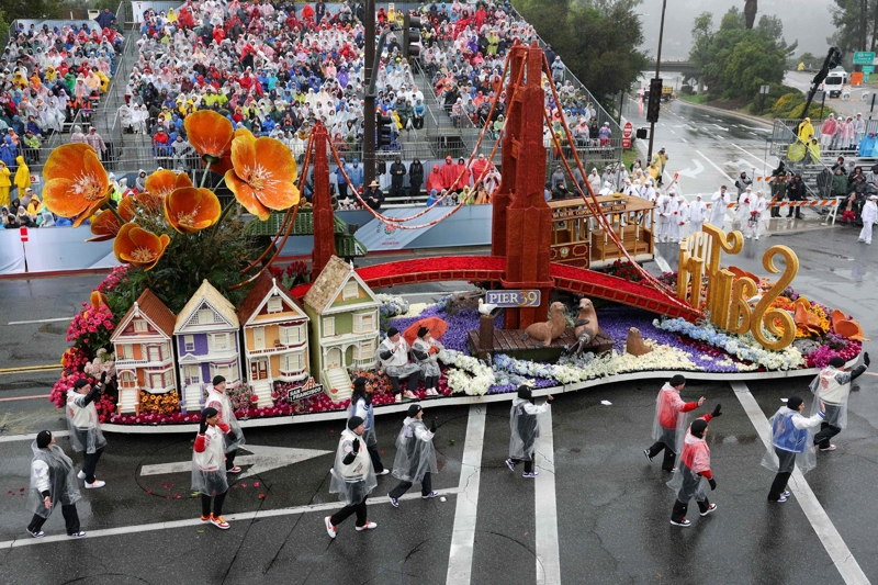 2026年1月1日,在美国加利福尼亚州帕萨迪纳市,人们参加新年玫瑰花车游行。当日,美国加州帕萨迪纳市举行第137届新年玫瑰花车游行,这是加州规模最大的迎新年活动之一。新华社/法新