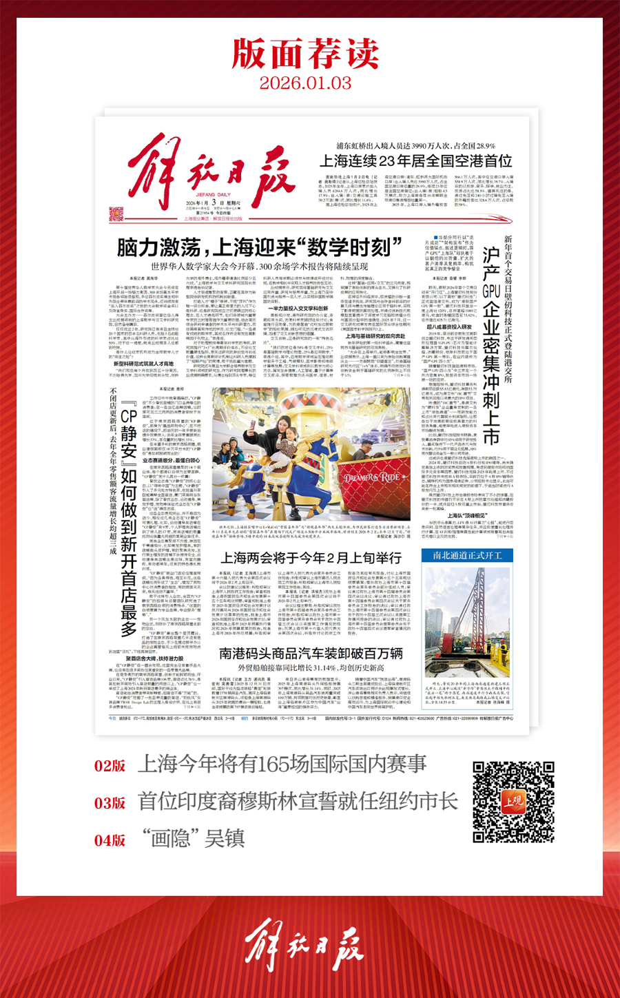 早上好!上观新闻『早读』来啦!2026年1月3日 星期六 农历十一月十五上海晴到多云,0~7℃,局部地区有薄冰